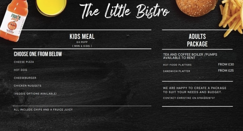 The Little Bistro is a family run local business and serves breakfast, lunch, dinner and an assortment of hot and cold drinks and snacks.