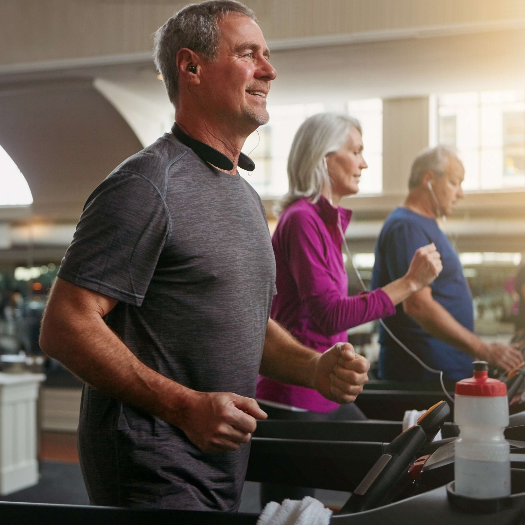 Man jogging on a treadmill in a gym.